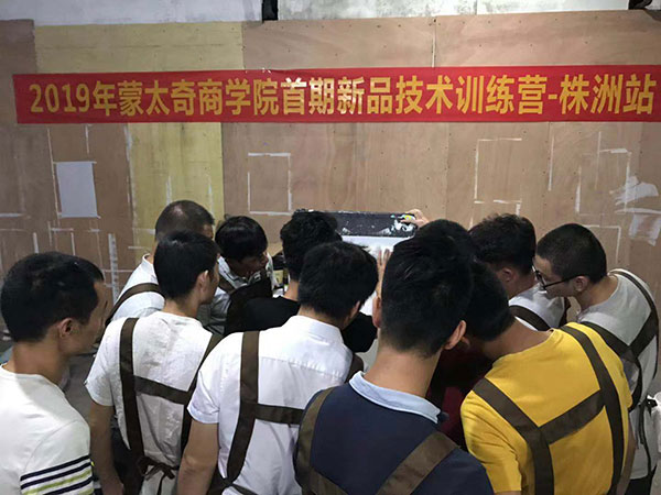 培訓開始,精英技師們已經迫不及待啦,經過昨天的學習,他們對今天的上課內容充滿了信心與期待。身穿蒙太奇統一的施工服裝,體現了技師對本次活動的重視和活動的專業化。