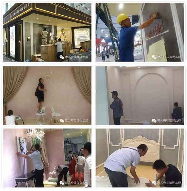 此次招商展會為了讓前來考察項目的創業者了解蒙太奇品牌的方方面面,實實在在加盟一個靠譜的品牌。從布展前期準備就集合了北京、長沙、深圳、廣州等地區的精英施工團隊,目的就是為了更好的將產品展示出來,讓您身臨其中,感受蒙太奇帶來的視覺盛宴;感受品牌的實力;感受多元化的產品魅力;感受產品帶來的綠色·環?!r尚!